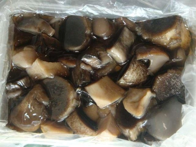 Ezenkívül a gombákat fagyasztva méret szerint rendezik. A kisebbeket teljesen betakarítják, a nagyobbakat darabokra vágják. Minden tételnek tartalmaznia kell hasonló méretű darabokat.
