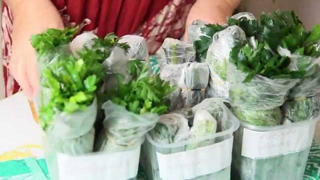 - Petrezselyem, kapor, zeller és koriander csomagokban és szeletelt formában egyaránt tárolható. Nagyon kényelmes ezeket a gyógynövényeket összekeverni és egyszeri adagokban válogatni. Ezeket a növényeket frissen tartják, csak mossák és szárítsák meg a füvet.