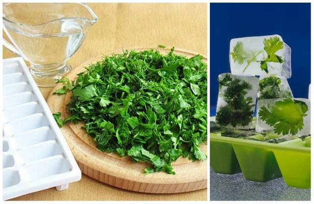 - Különösen népszerű az utóbbi időben az ízesítőt jégkockákba fagyasztva... Valóban nagyon kényelmes, mert a kocka levesbe dobható, vagy pörköltekhez, zöldségekhez adható - a zöldek gyorsan megolvadnak és elterjednek az egész edényben. A fagyasztás egyetlen hátránya, hogy az apróra vágott ételízesítő kockák nem használhatók salátákhoz vagy más friss ételekhez.